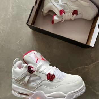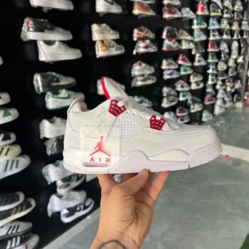 Jordan Copy Shoes online, Jordan Shoes Copy, Replica Jordan Shoes, First Copy Jordan Shoes, Jordan Retro 4 White Metallic Red Sneakers For Boys